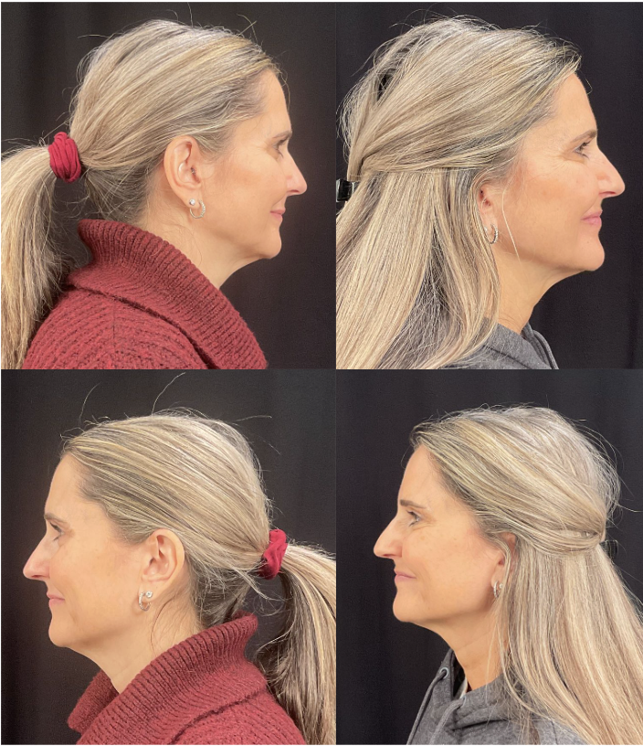This patient came to the office hoping to improve the appearance of her jawline and neck. She noticed early skin laxity and vertical neck banding that made her profile appear less defined. She was interested in a subtle, non-surgical option to restore a smoother, more youthful contour.
