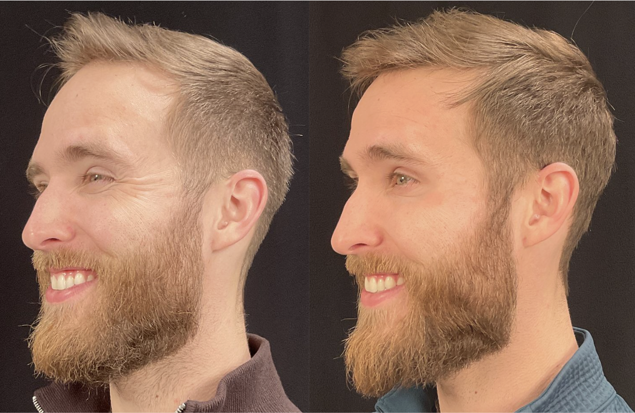 After discussing her goals, we treated the platysma muscle and jawline using a neuromodulator in a technique commonly known as the Nefertiti neck lift. By relaxing the downward pull of the platysma, the treatment helped improve jawline definition and soften the appearance of neck bands. Within two weeks, she noticed a subtle smoother neckline and a more defined jawline while still maintaining a natural look.